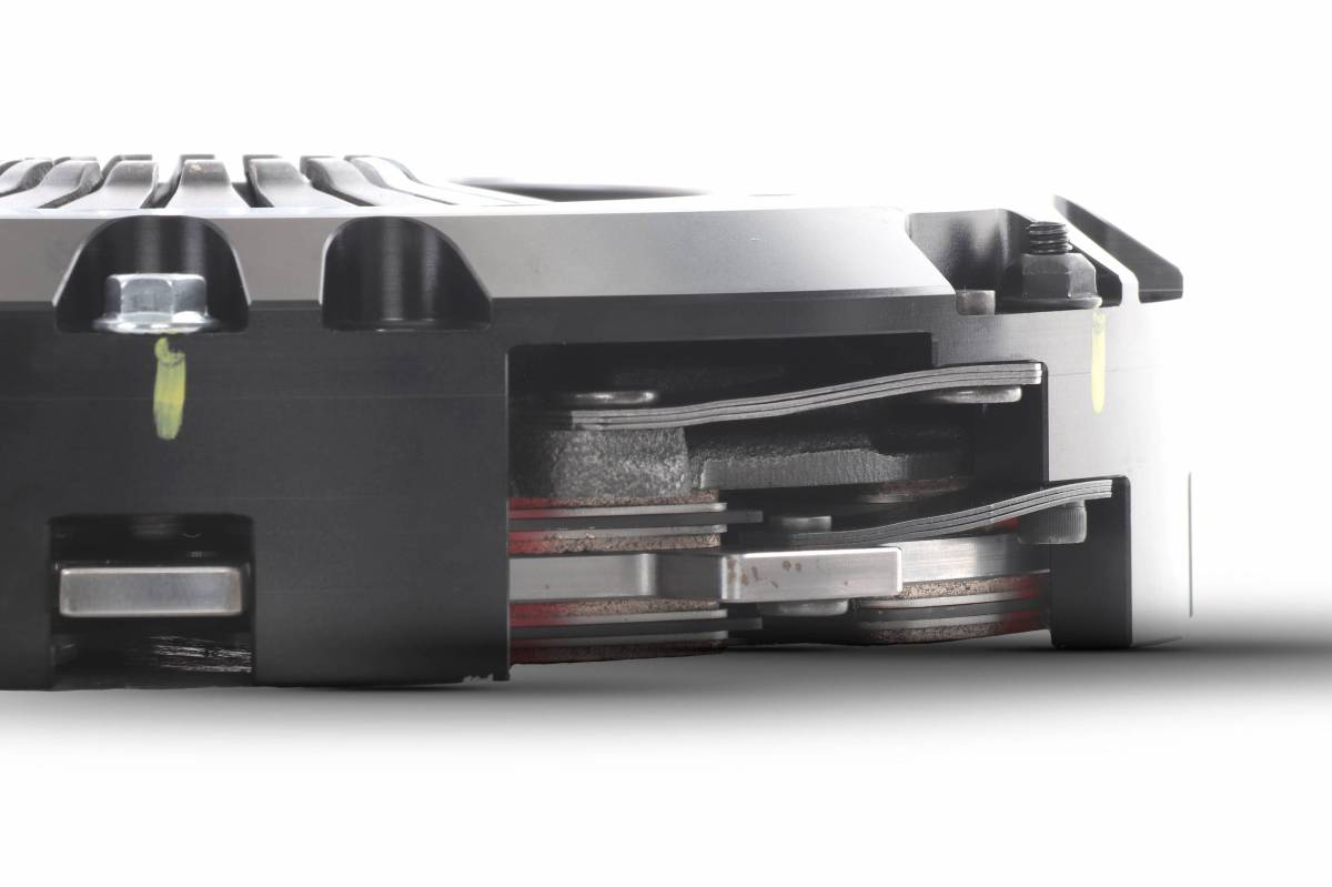 The cover assembly is machined from billet aluminum and is then Type 3 hard anodized. Our billet covers have roughly 25% more tensile strength than the competition’s cast unit. By focusing our ability on machining the strongest cover possible while maintaining minimal weight, we are basically able to eliminate any flex in the cover. Our billet covers see only .003" of flex where as a cast or stamped unit can see as much as .030" of flex. By eliminating this flex in the cover, the driver is able to operate the clutch much more consistently and confidently. All the movement being applied to the diaphragm of the clutch from the throwout bearing is used solely to engage and disengage the clutch and isn't wasted by the cover flexing first. The strength of our covers also results in greater clamping force over the same amount of area vs. a cast or stamped cover. This means our twin discs are easy to drive and have superior clamping force to make sure all the power your engine is making is being utilized.