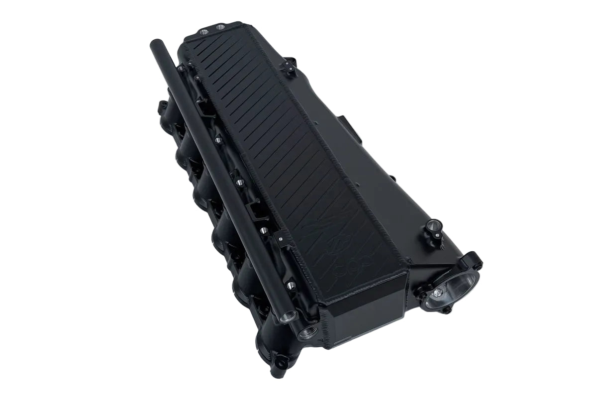 The OEM charge-air-cooler manifold for the B58 engine is adequate in cars with little or no modifications. However, it starts to really its weaknesses in cars that have bolt-on modifications, turbo upgrades, increased fueling (such as port injection), and performance tuning. In addition, the OEM intercooler system has been known to suffer from heat soak in demanding racing conditions such as time attack, endurance racing, drag racing, and drifting, as well as spirited driving on the street. This can cause the car to pull timing out of the engine due to high intake air temperatures (IATs). This can send the car into “limp mode” once temperatures reach a certain threshold. In high boost applications the OEM manifold is also prone to failing at the crimp on gasket joining of the core and tanks.