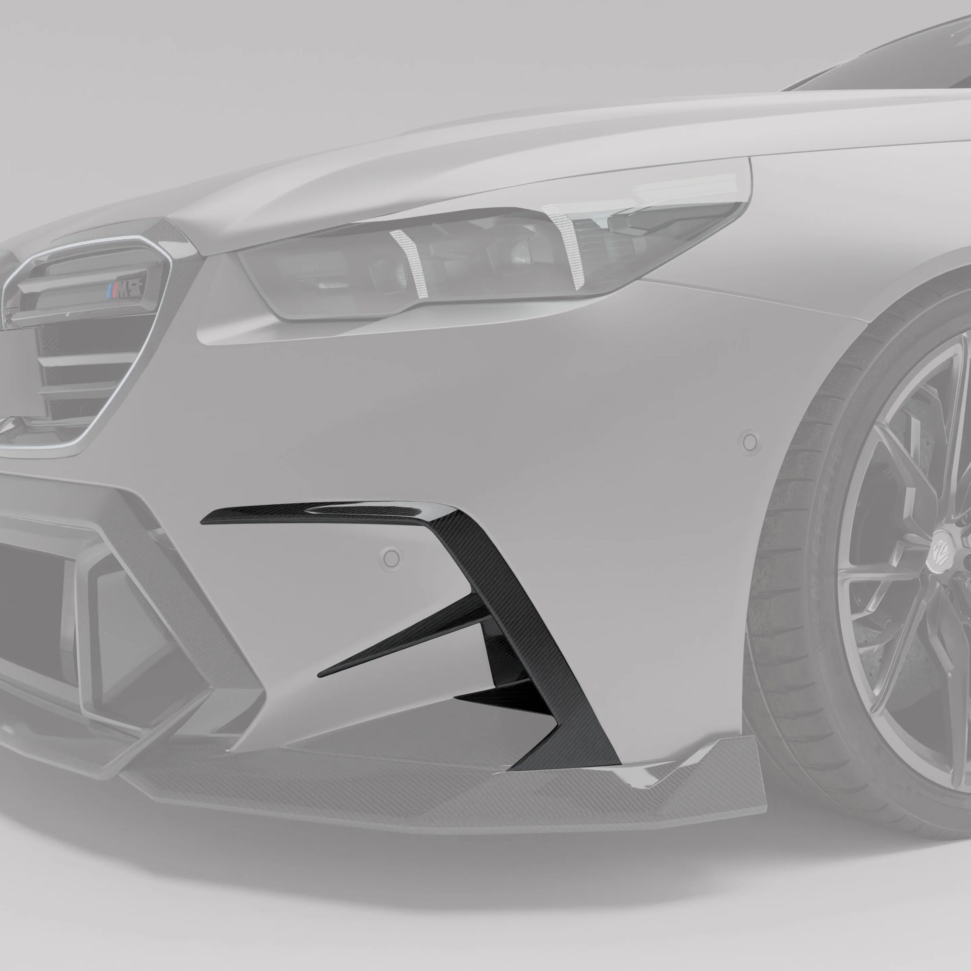 Enhance the stability and aerodynamic efficiency of the M5 with these expertly designed front bumper canards. Seamlessly blending with the vehicle’s original design, they provide a subtle yet impactful upgrade to both performance and aesthetics, making them an essential addition for enthusiasts seeking refined functionality.
