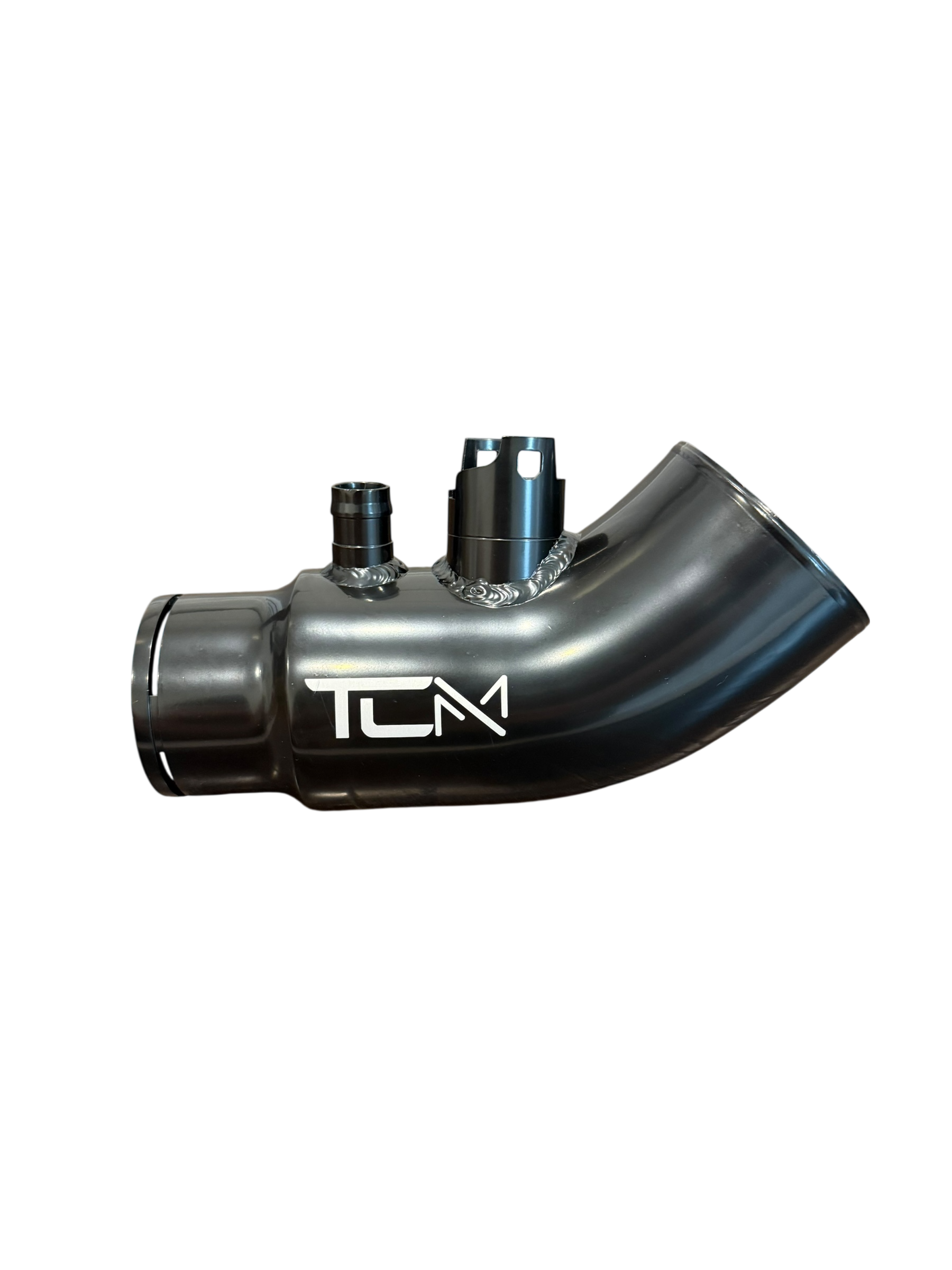 The TCM turbo inlet replaces the weak, and failure prone, plastic factory inlet with a more robust aluminum one. CNC machined fittings are utilized to ensure proper fitment and guarantee installation as a direct replacement to the OEM inlet.