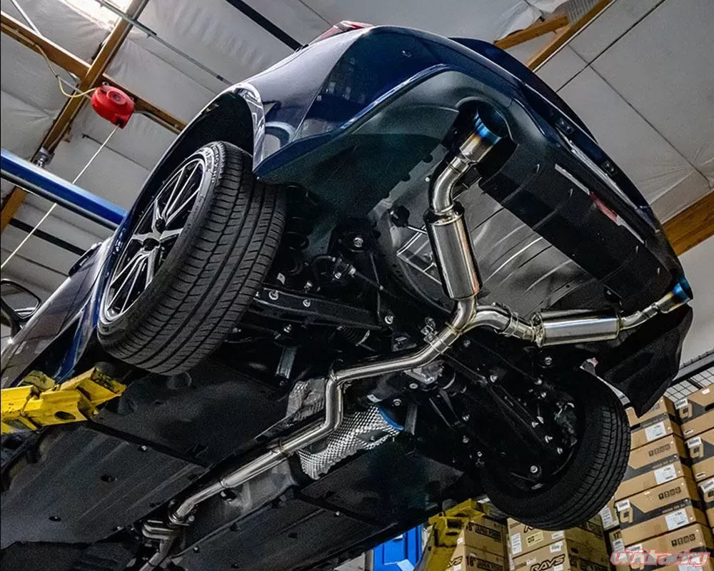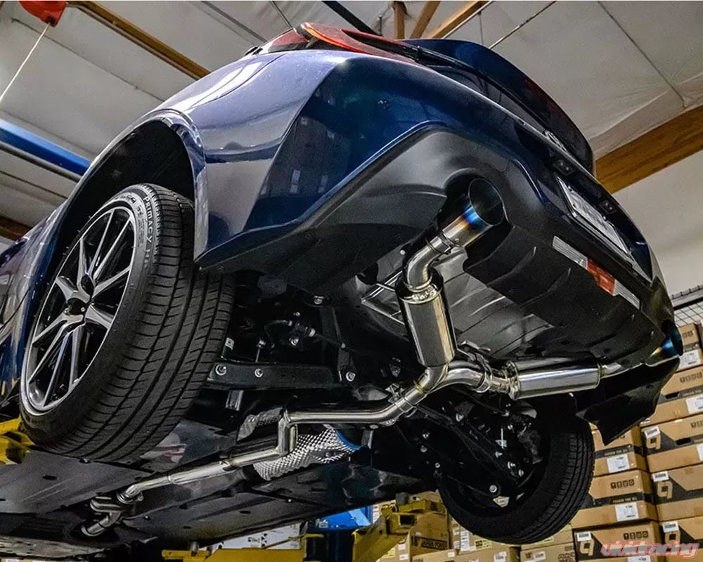 Utilizing 3-inch 304 stainless steel from the catalytic converter back, the VR Performance GR86 exhaust eliminates the hindering back pressure created by the factory system. Each mandrel bend needed was precisely placed to ensure optimal flow through the exhaust while allowing it to fit snugly against the undercarriage. Hardware and gaskets are provided and no modification is needed for installation. The 120mm diameter tips fill out the factory exhaust cutouts in the bumper to tie everything together.
