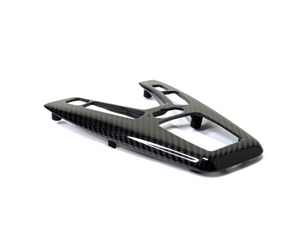AutoTecknic Dry Carbon Fiber Shift Console Trim made specifically for the F10 M5 with M-DCT transmission. Other than the mounting clips, the whole piece is made with 100% carbon fiber using our signature autoclave production method utilizing world-renowned Toray 3K pre-preg carbon fiber. This production method is also known as 'dry carbon' production.