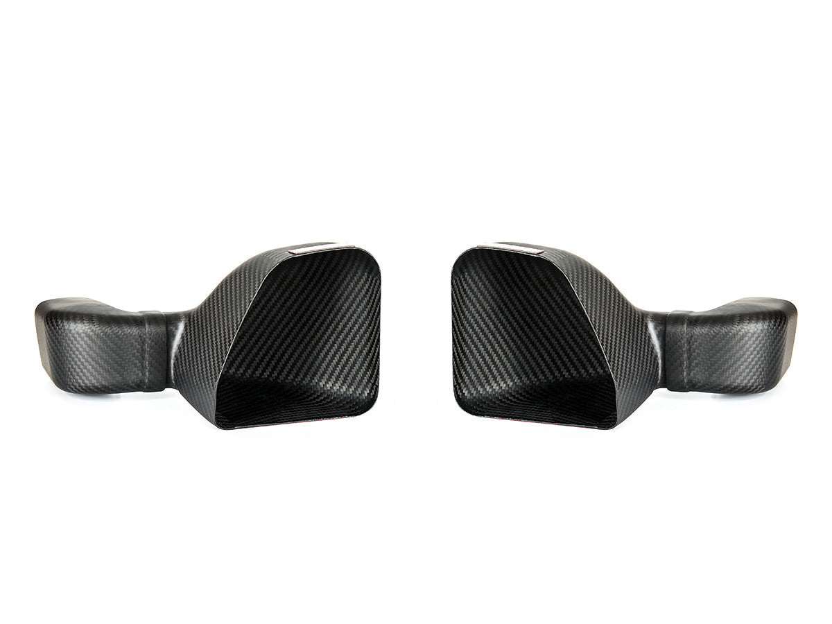 Crafted from premium dry carbon fiber, our intake air duct set not only enhances functionality but also adds a touch of aesthetic sophistication to your vehicle's front end. The lightweight nature of carbon fiber complements the performance-driven design, striking a perfect balance between form and function.