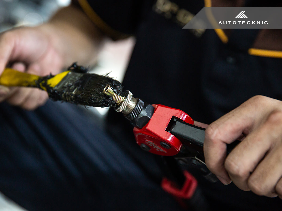 Unlike traditional stainless steel versions, the AutoTecknic Dry Carbon oil cooler guard weighs a mere 1.24 KG, significantly lighter compared to the 7.45 KG of stainless steel options. The use of premium pre-preg carbon fiber not only reduces weight but also adds a touch of sophistication to your under-chassis, elevating the overall visual appeal.