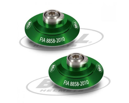 Professional HANS post clips that have aluminum bases. For use with the Hans device.