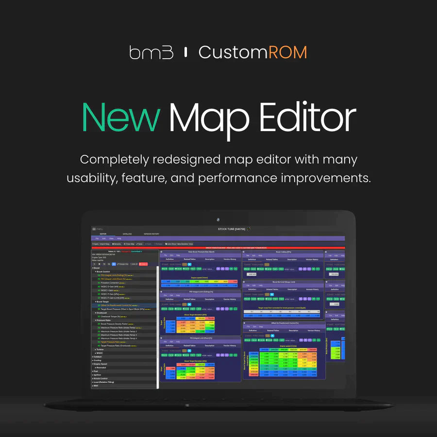 - (Optional) Custom tuning available through tuners in the bootmod3 Tuner Directory. bootmod3 contains a full map editor so you can tune your car yourself or with your local tuner of choice as well.