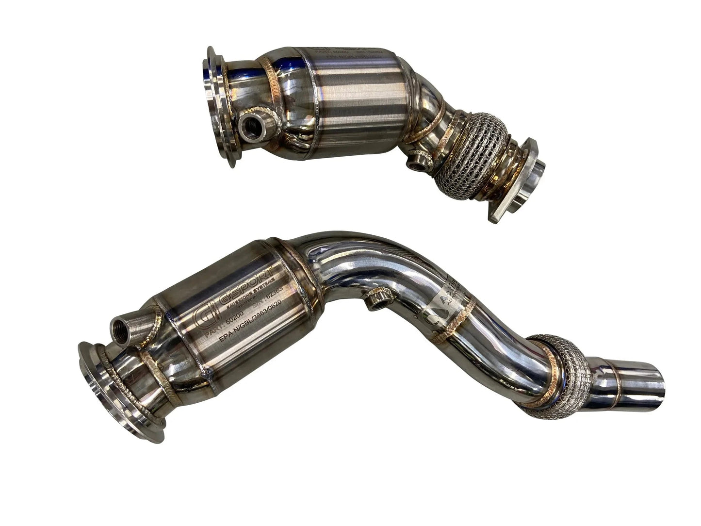 This variant includes a pair of 4" ultra high flow GESI catalytic converters (Gen 2 Advanced) that will NOT produce a CEL!