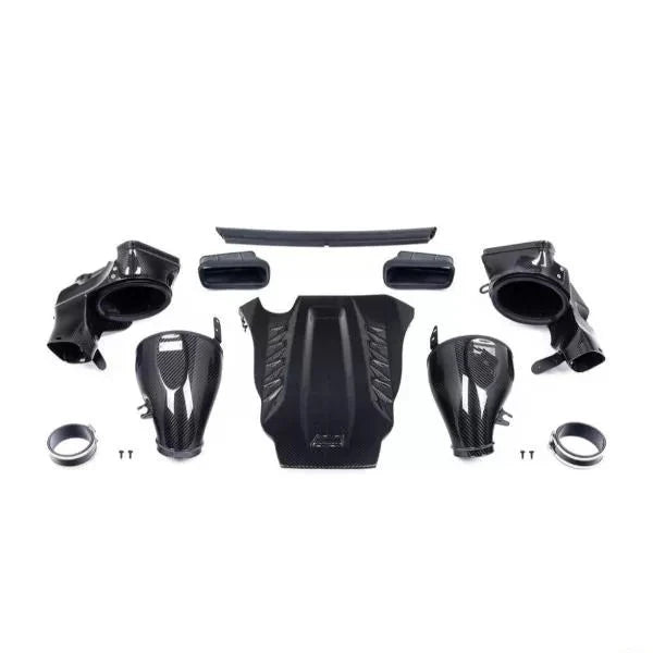 The Eventuri X5M intake system consists of a number of components engineered to perform a specific purpose and fabricated to the highest of standards. We use 100% pre-preg carbon fiber with no fibreglass which means we can achieve a smooth internal surface to maintain smoother airflow. Here are the details for each component and the design ethos behind them: