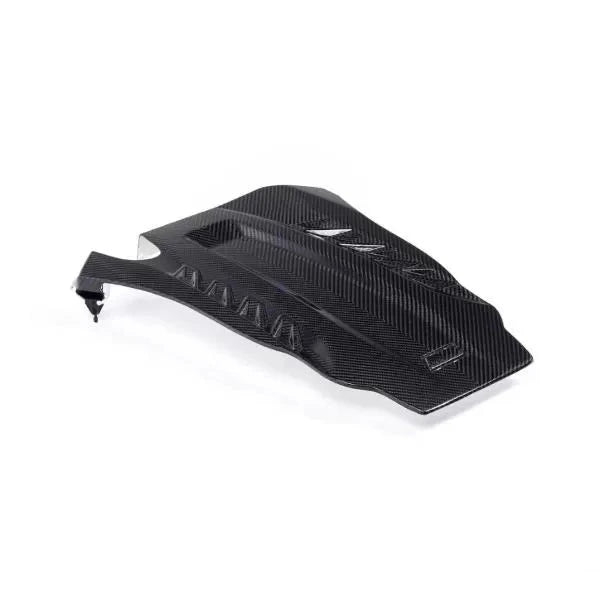 Since our filter housings have been designed for maximum volume, the OEM engine cover no longer fits into place. So we have produced a modified cover which finishes off the engine bay, covering the engine hardware for a finished aesthetic. We have allowed for gaps between the engine cover and the intakes so that the heat coming off the engine can easily dissipate rather than soak into the intake system.