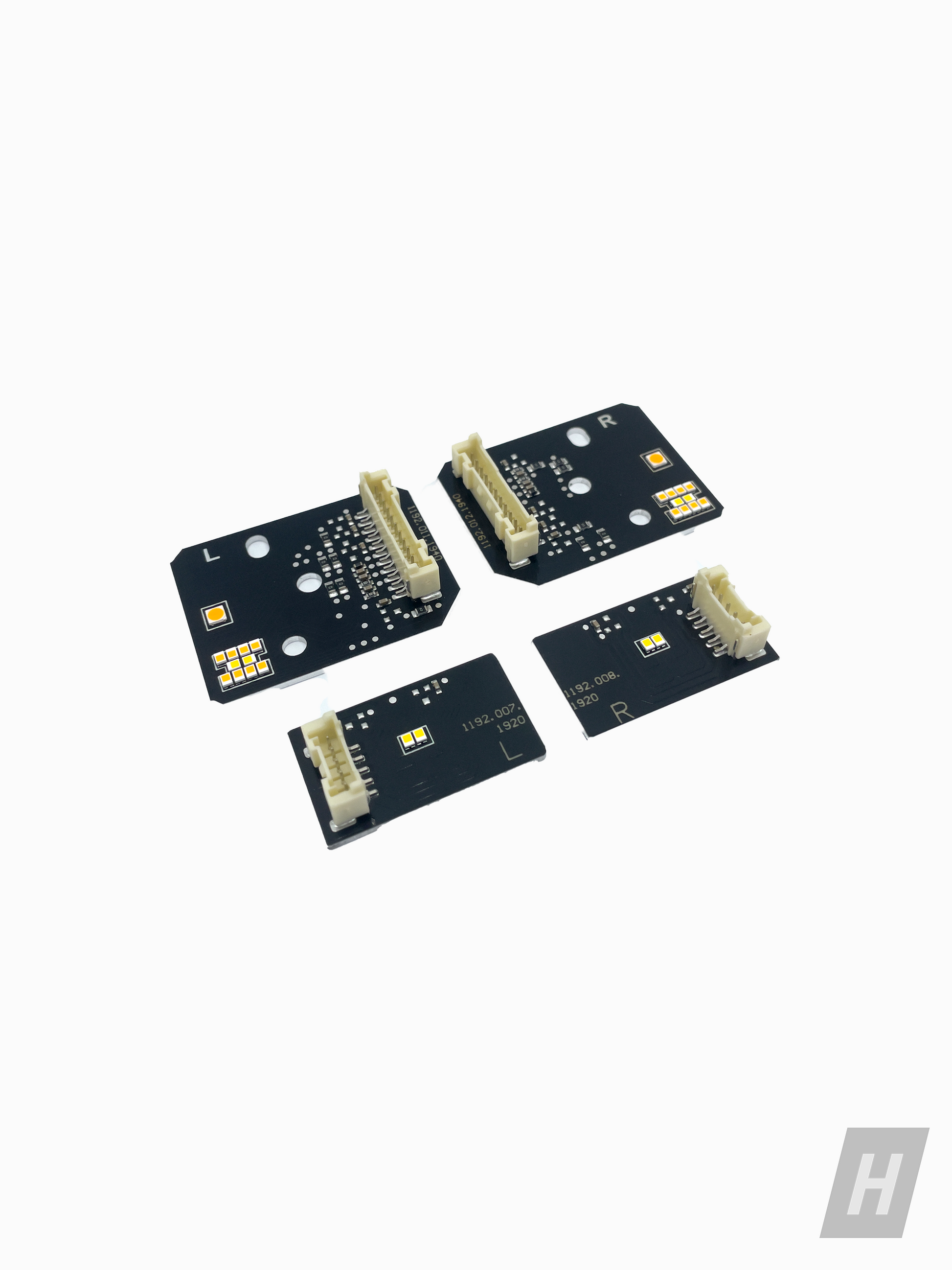 Set includes low-beam and high beam LED boards for both driver and passenger side headlights.
