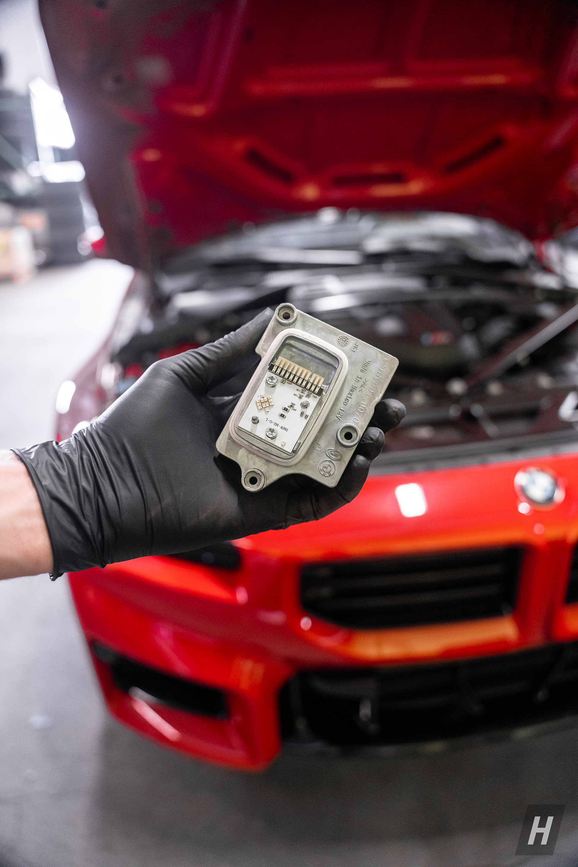These provide a straightforward plug-and-play solution tailored for G87 M2 models featuring laser or LED headlights. The installation process is as follows: first, remove your heatsink, followed by the OEM DRL. Then, apply fresh thermal adhesive to the rear side of the HM CSL DRL boards and proceed with the reinstallation.