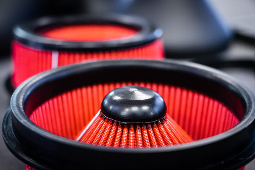 The air filter is completely encapsulated within the air filter housing rejecting the vast majority of the engine bay hot air and with the angle of the front inlet the air circulates around the air filter giving an even distribution of outside cool air.