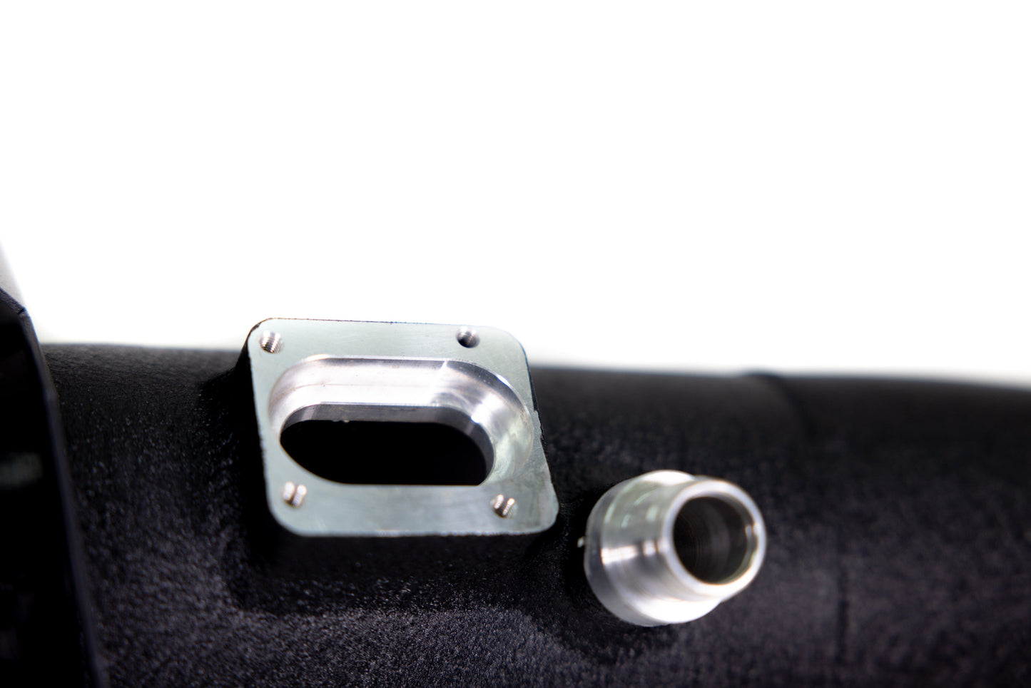 The ARM N55 Intake utilizes precision CNC machined fittings for the MAF sensor and vacuum line for easy reinstallation of these OEM components.