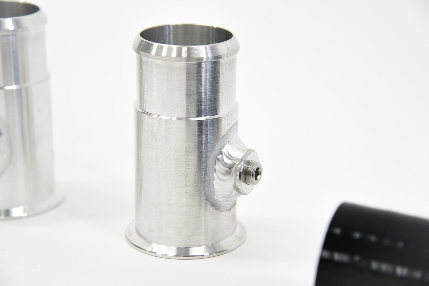The methanol ports are placed just after the turbocharger and right before entering the silicone couplers which connect to the intercooler. The result is a meth-capable charge pipe with OEM-like fit and finish.