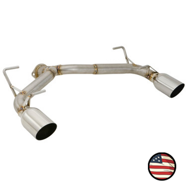 Installation / How It Fits Together: At all OEM connection points, OEM fit connections are used. This axleback exhaust simply bolts up to the factory flange without any need for an adapter.