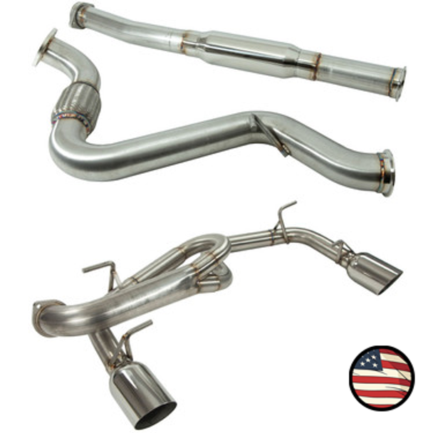 Here it is, the 3" catback for the 2013-2016 Subaru BRZ/Scion FR-S. This package includes our Dual Exit 3" Axleback w/ 5" Mufflers and our 3" mandrel bent midpipe with resonator. Bundling these this way saves significantly on shipping. This bundle includes a 3" Donut Gasket to make the proper connection to the front pipe.