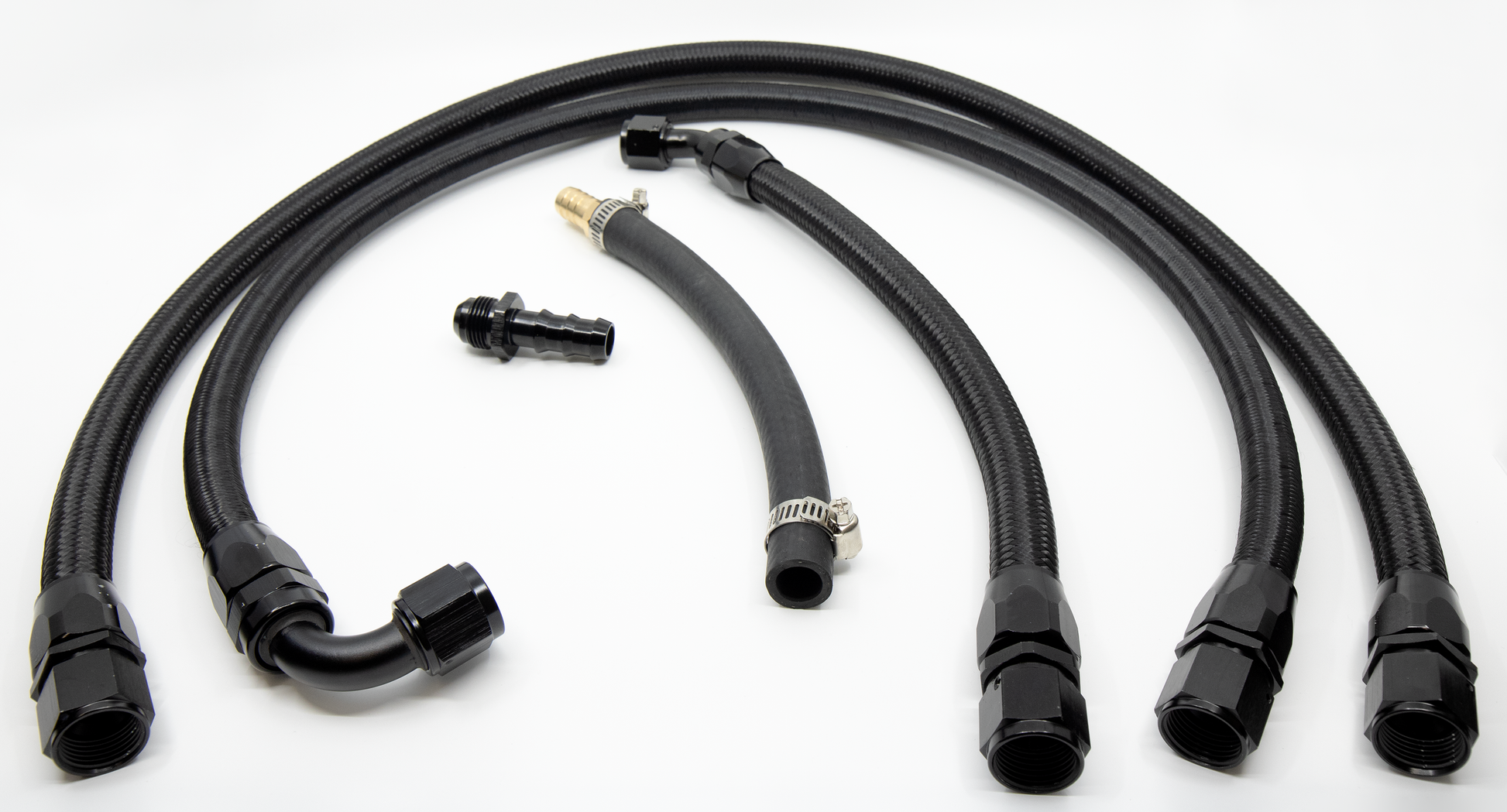 This is designed to be a hardware kit. This was made to help take into consideration the end user and allow them to decide what works for them best. We did design this with the best in mind and recommend using the Nuke Performance .75L catch can as well as the Radium 10AN swivel fittings. (2 NA or 3 Supercharged) Nuke Performance Catch Can and Radium fittings not included.