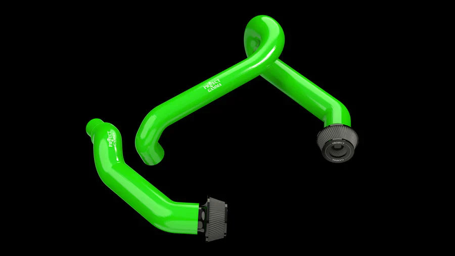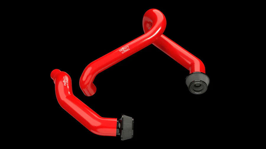 Project Gamma intakes for the BMW M3 | M4 (G80/G82) feature a 4 layer reinforced ply silicone with oil resistant lining and aluminum hose connections to improve airflow, increase horsepower, and add style to your engine bay.