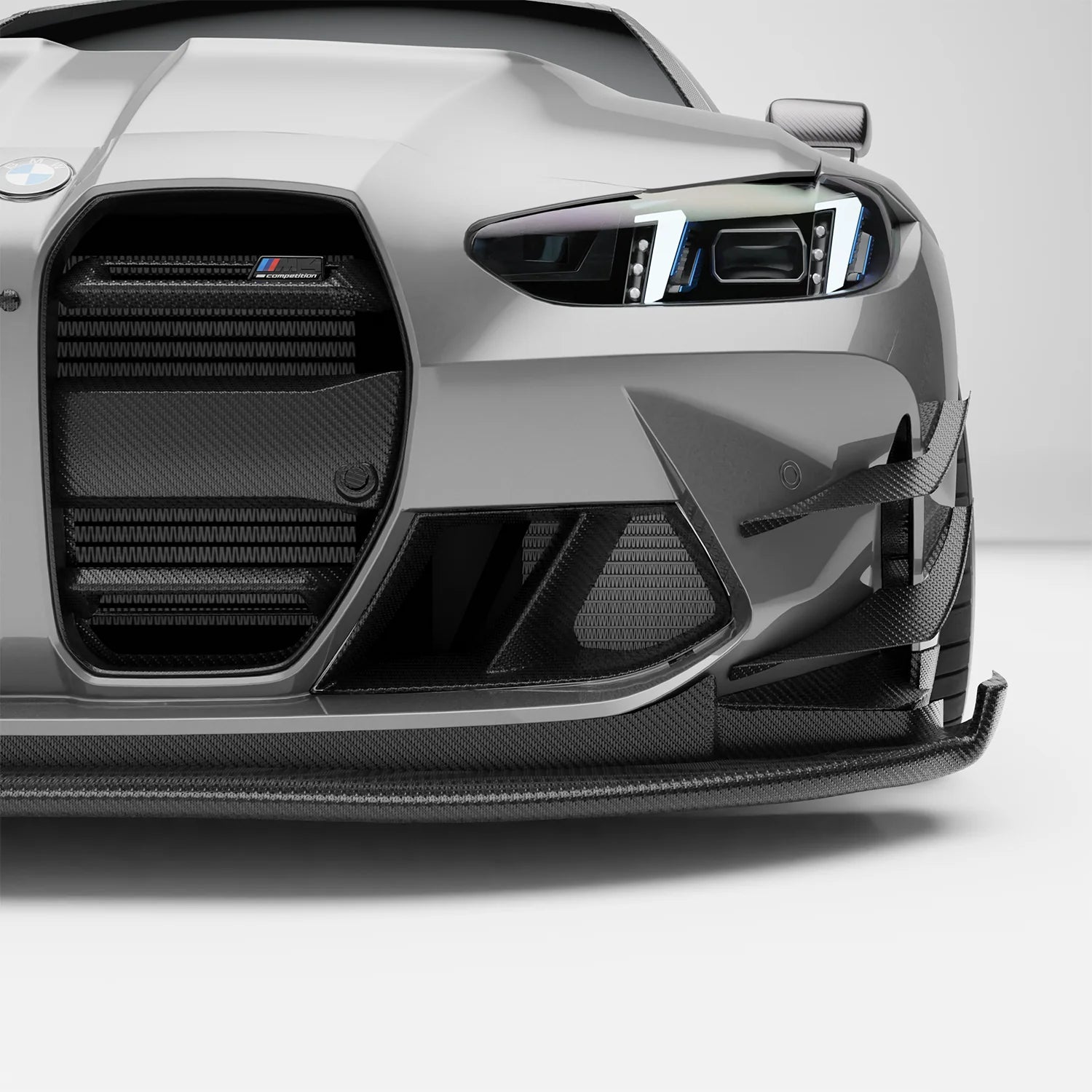 Made from lightweight prepreg carbon fiber, these canards are meticulously designed to direct airflow more efficiently, improving aerodynamics while minimizing weight. Their aggressive styling enhances the M4’s track-focused appearance.