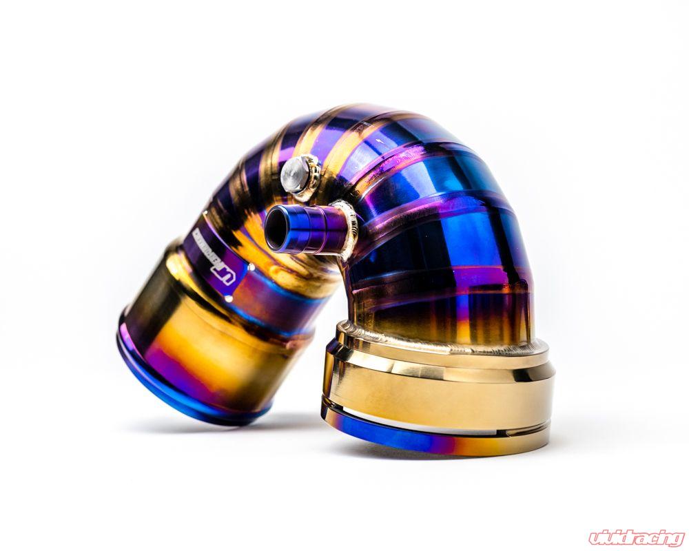 The VR Performance charge pipe kit is made up of the Hot Side and Cold Side sections. The hot side includes 2 titanium pipes that are a direct bolt-on in place of the factory units. These new pipes help to delivery charge air efficiently to the engine. The increased volume allows for higher boost without the possibility of cracking or popping off. Precision fitment of the replacement hoses is done using stunning pipe cuts from 3D scanning of the factory pieces.