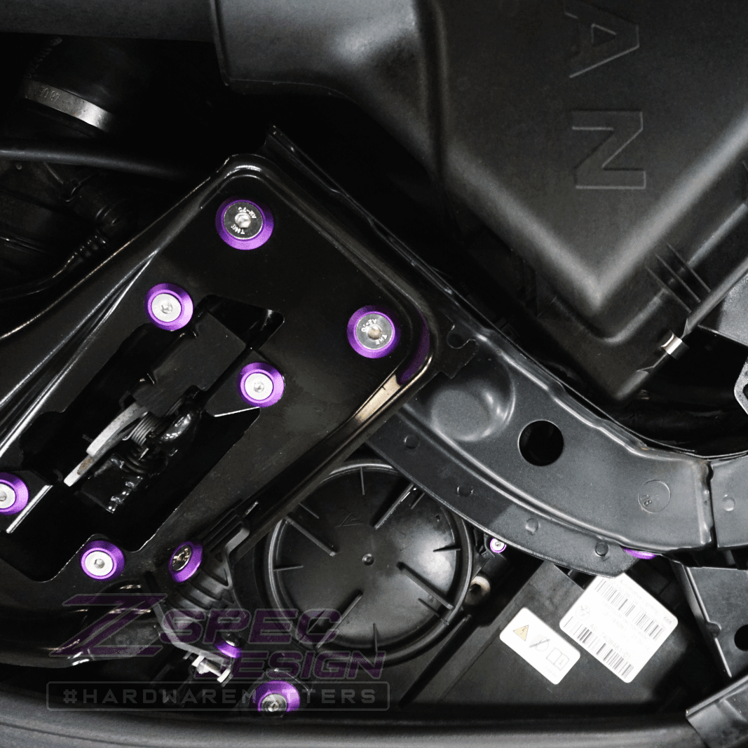 The kit's fasteners are SUS304 Stainless Steel and colored finish washers are billet-aluminum. ZSPEC Stainless-Billet fastener kits provide the deepest coverage and value while providing a clean updated appearance.